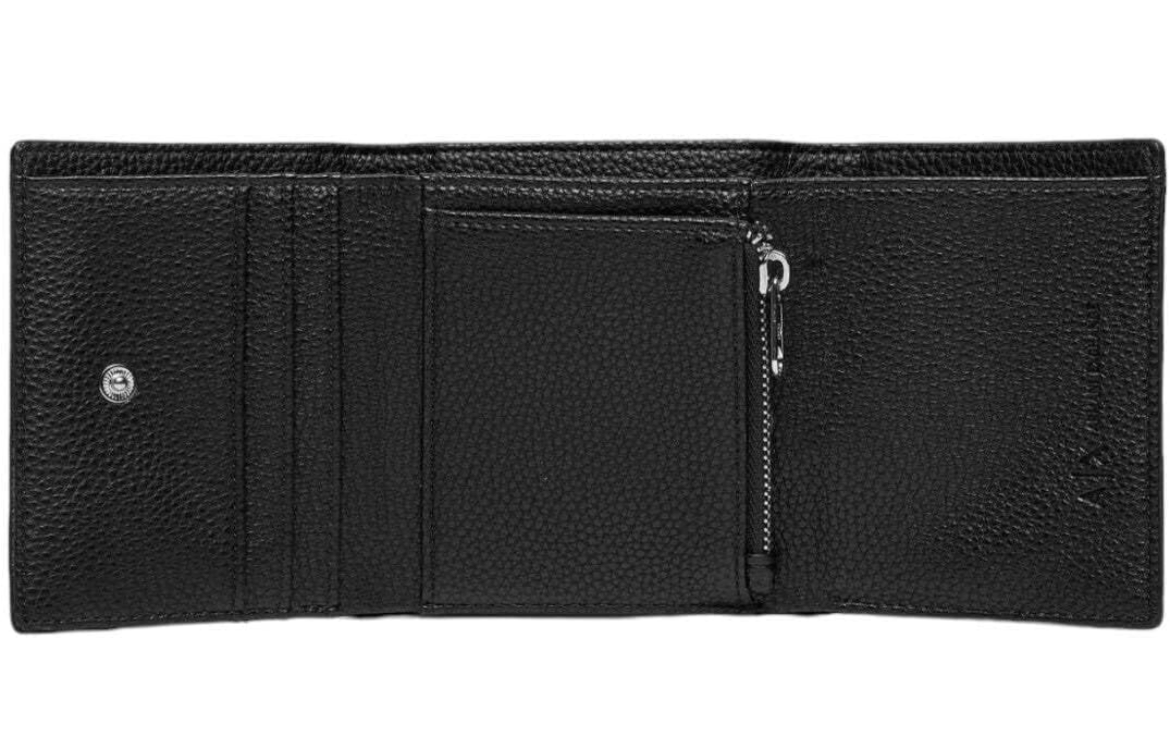 Introducing the Armani Exchange Wave Women’s Bi-Fold Wallet in Black—a sleek and sophisticated accessory designed for the modern woman. Crafted from high-quality materials, this wallet combines functionality with a minimalist aesthetic, making it an ideal choice for everyday use.