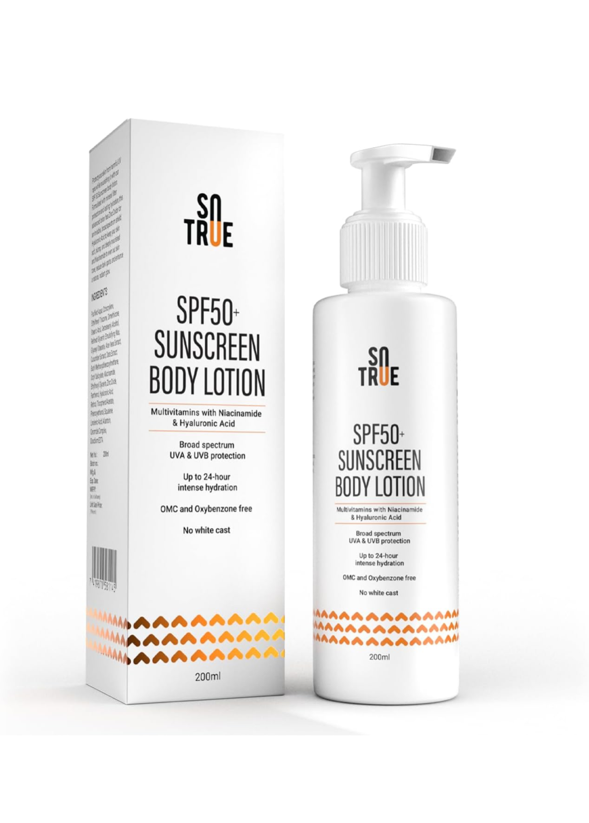 Experience the ultimate protection with our Sotrue SPF 50+ Sunscreen Body Lotion. This lotion offers high-level protection against UVA and UVB rays, ensuring your skin stays safe in the sun. Enriched with multivitamins, it not only protects but also nourishes your skin. Perfect for daily use or outdoor activities, this lotion is a must-have for anyone who loves the sun but also values skin safety.